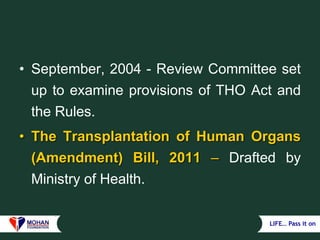 Over 70 amendments to the bill were discussed before the bill was passed, several of which were agreed. Other transplants, including of limbs and face, would be exempt from the final regulations, which at the time of the bill, had yet to be completed.